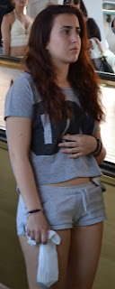 Mujeres mostrando (sin querer?) su ropa interior. Mujeres sexis con pantalones apretados marcado ropa interior. Tiene un seductor patrón de encaje, con panty medias y entrepierna abierta con tirantes.